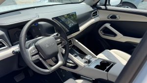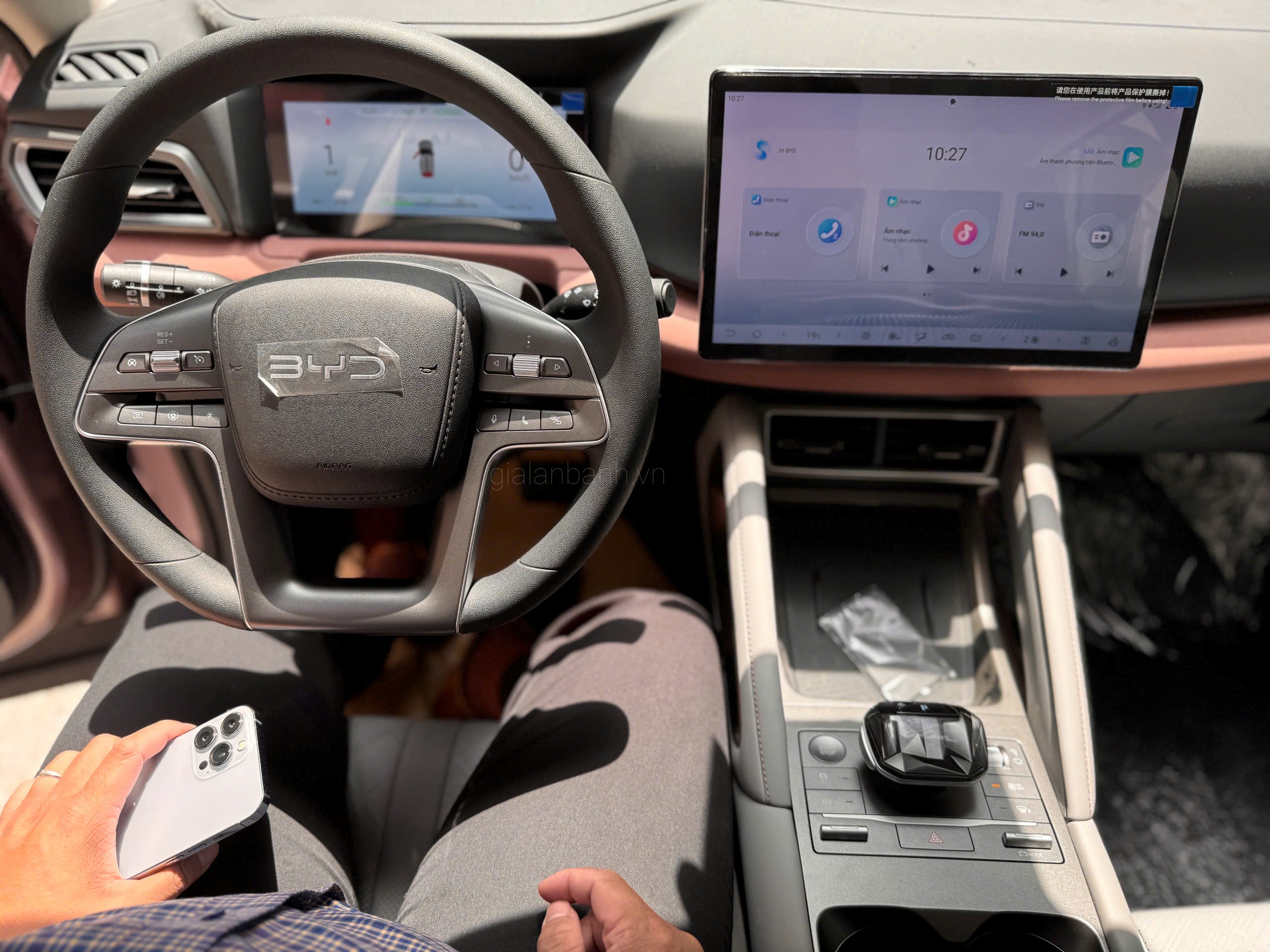 Điểm nhấn nổi bật nhất của nội thất là màn hình trung tâm 12,8 inch có thể xoay ngang/dọc 90 độ – tính năng đặc trưng của BYD. Màn hình sử dụng chip Snapdragon 690, có độ phân giải 1920x1080px, hỗ trợ Apple CarPlay và Android Auto không dây.