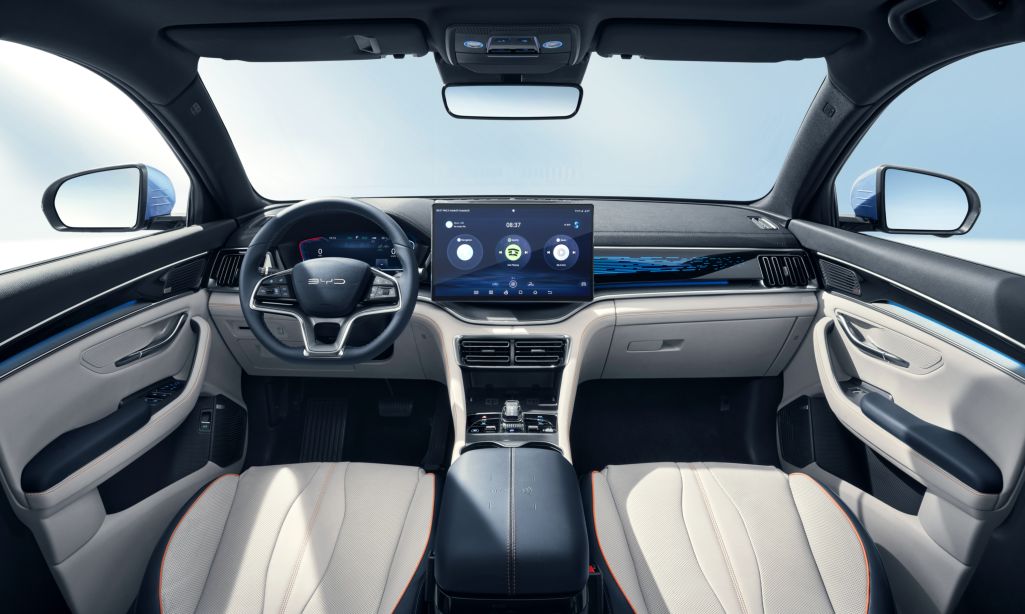 Bên trong khoang lái, SEALION 6 mang đến trải nghiệm cao cấp với: màn hình cảm ứng cỡ lớn 15,6 inch, tích hợp hệ điều hành thông minh hỗ trợ tiếng Việt, cụm đồng hồ kỹ thuật số hiện đại, ghế ngồi bọc da cao cấp, cửa sổ trời toàn cảnh gia tăng sự thoáng đãng và sang trọng…