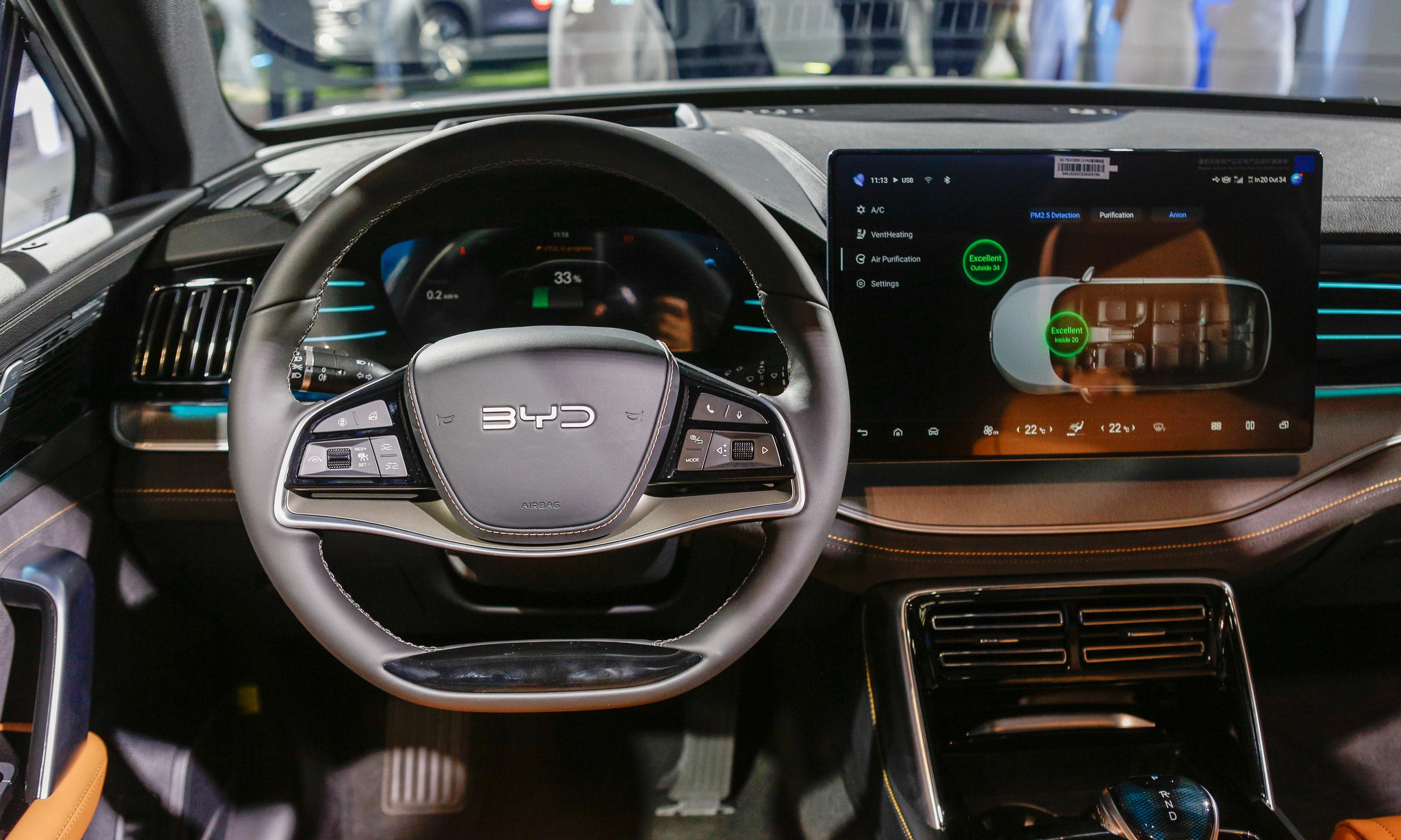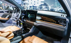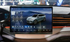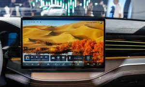 Bước vào khoang cabin, người dùng sẽ choáng ngợp trước hàm lượng công nghệ hiện đại. Mọi thao tác giải trí và điều khiển đều tập trung ở màn hình cảm ứng trung tâm kích thước “khủng” 15,6 inch có khả năng xoay 90 độ độc đáo. Bảng đồng hồ kỹ thuật số sắc nét hiển thị trực quan tình trạng xe.
